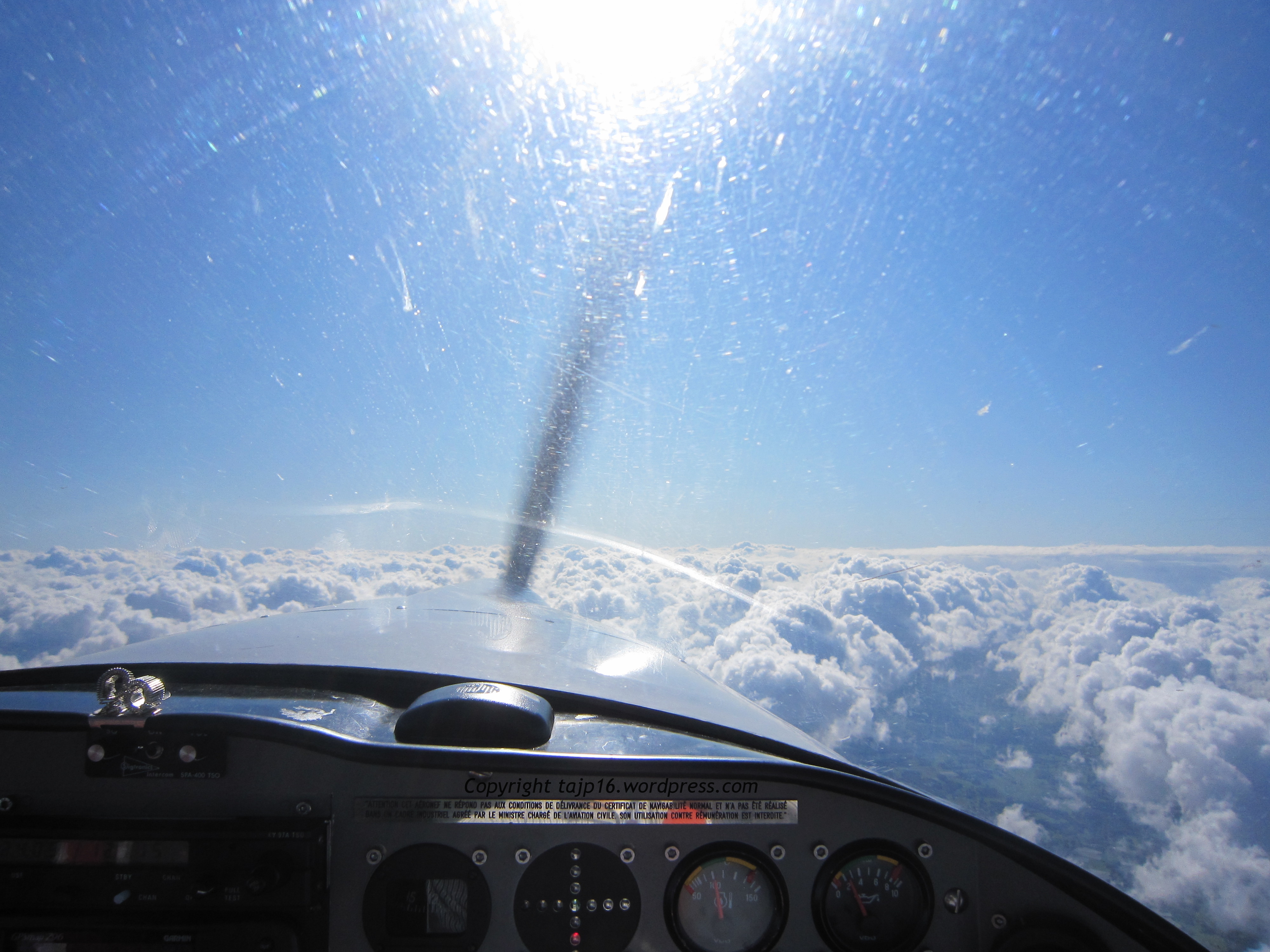 Pour l’aller, je suis copit. Pierre-Alexandre après avoir vérifier les vents, décide de faire sa croisière au FL95. Nous avons tous eu les pieds gelés malgré une température sol de plus de 20°C xD. Quand on avait la vue du sol, la vue était imprenable.
