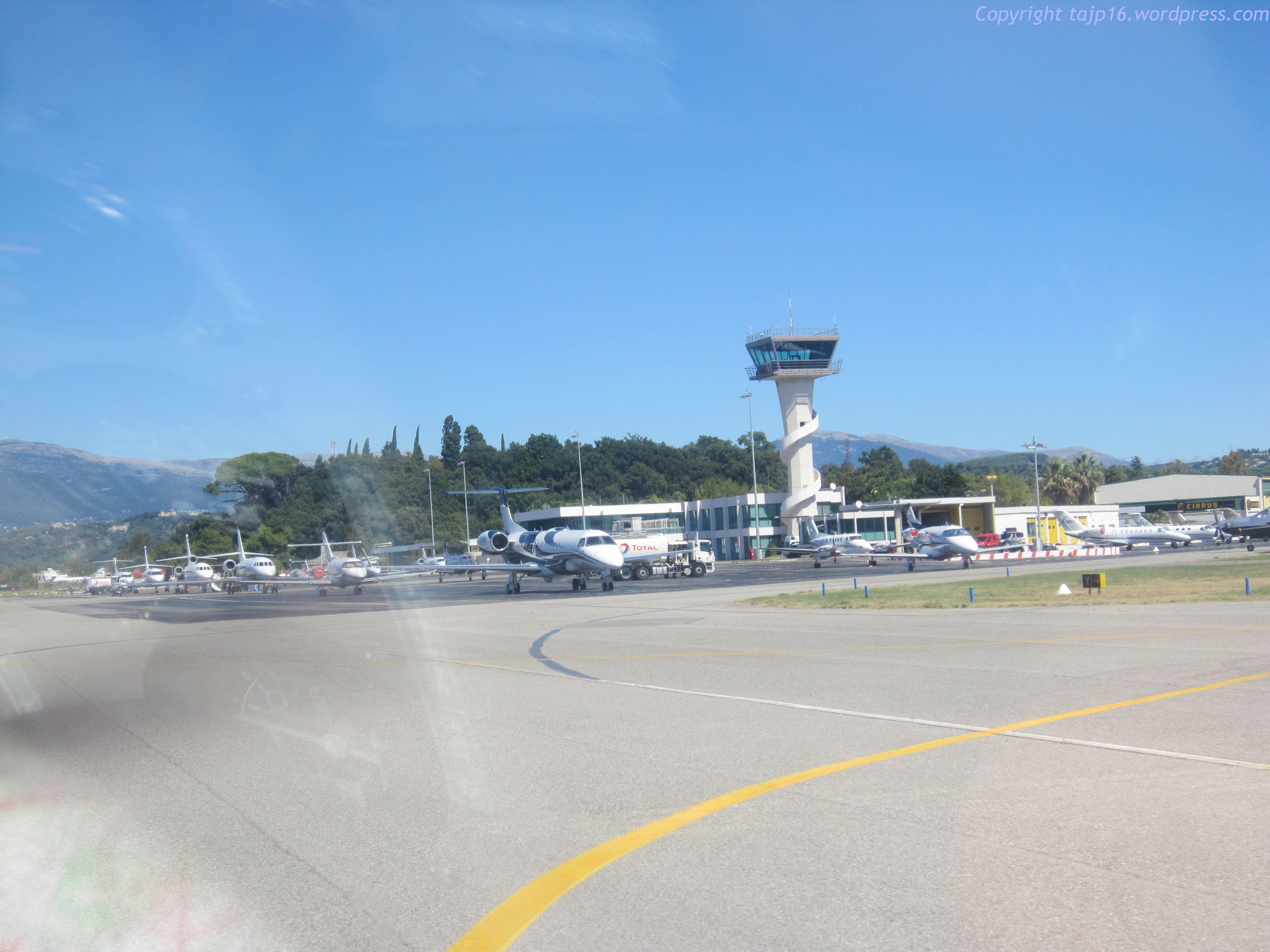 Après 2h30, oui 2H30 de vol (croisière à 150 kt avec des pointes à 170 kt), nous voilà verticale Cannes. La TWR, après nous avoir mis en attente 5′ au point November, nous autorise pour une final sur la 17. Mais un petit problème : un vent plein travers de plus de 20 kt. PA prend l’initiative de demander la 22 où le vent est plus de face avec une légère composante de travers.
