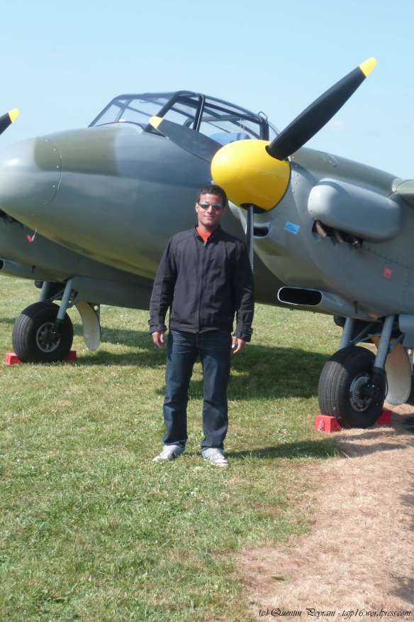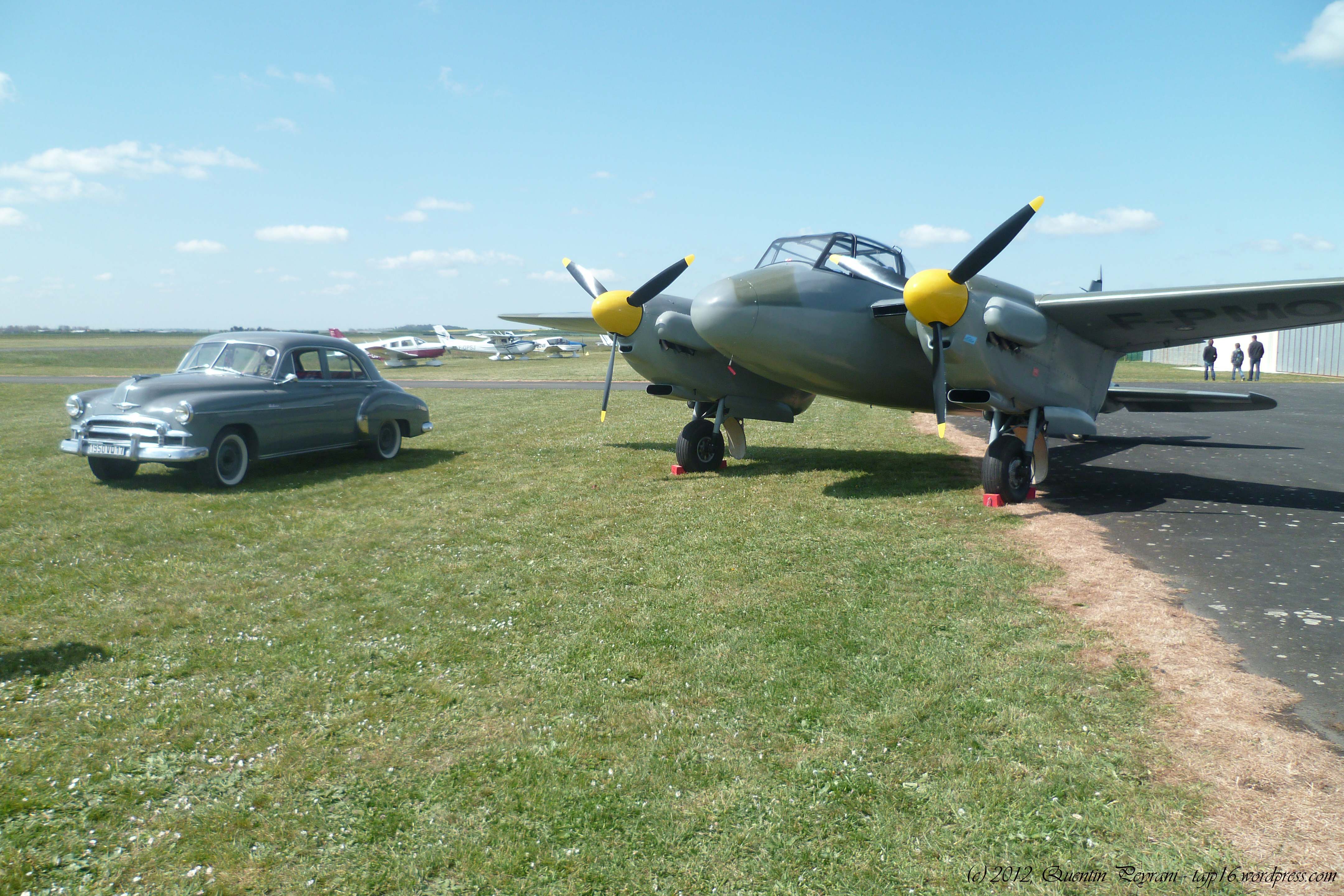 On prend le petit déjeuné offert. C’est qu’on est venu spécialement pour ça xD. On discute avec nos amis pilotes. Puis enfin, on va voir les avions. Il y a donc, la réplique d’un Mosquito au 3/4. Belle engin !! On voit aussi, des véhicules de la seconde guerre mondiale, on va y jeter un coup d’oeil curieux. Mais ils sont sur le départ, dommage.