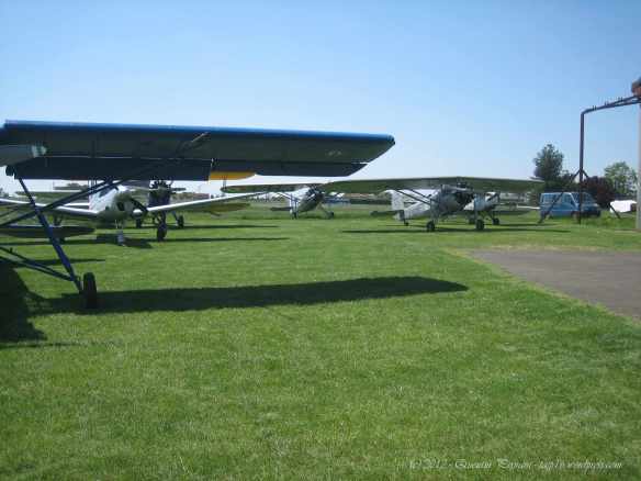 On arrive finalement à Niort. Leur parking est plein. On y refait le plein. On va voir les jolies avions de la seconde guerre mondial. Les équipages précédents commencent à repartir. Nous, on se pose. On attends notre tour. A Niort, il fait chaud. Enfin, le vent refroidit bien, mais dans le cockpit, une bulle de plexiglas, on crame vite. J’enlève mon blouson, et le laisse dans un autre appareil pour éviter de nous encombrer.