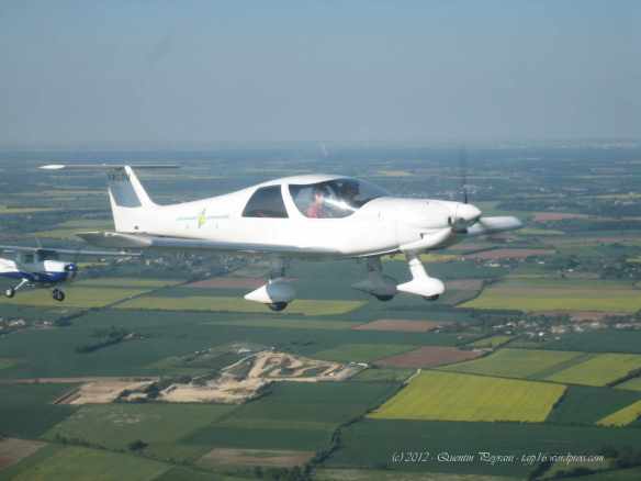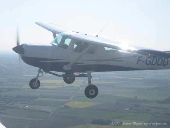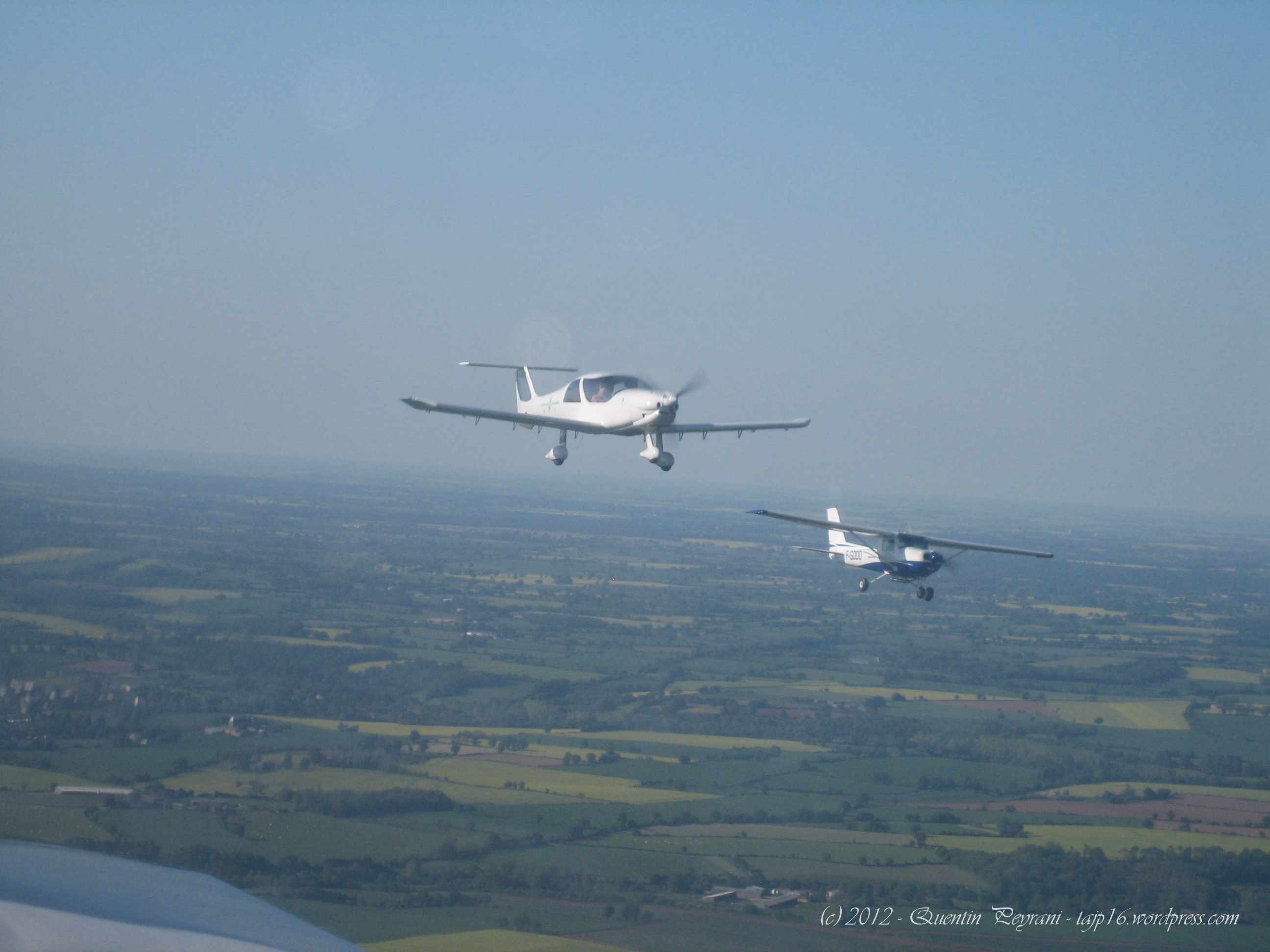 Bon on finit par décoller à 16h30. On décide de faire le rallye quand même. Sur ce trajet, les rôles s’établissent naturellement. On trouve l’équilibre, et notre NAV s’en ressent. Il pilote, et tient le cap, je m’occupe de la partie navigation. Néamoins, j’ai oublié de noter les photos que j’avais repéré. Je n’en placerais aucune (sauf une ou deux que j’aurais pu bien placer, mais le retard à joué contre nous, et je n’ai pas eu le temps de les positionner sur la carte une fois au sol :s). Dommage !