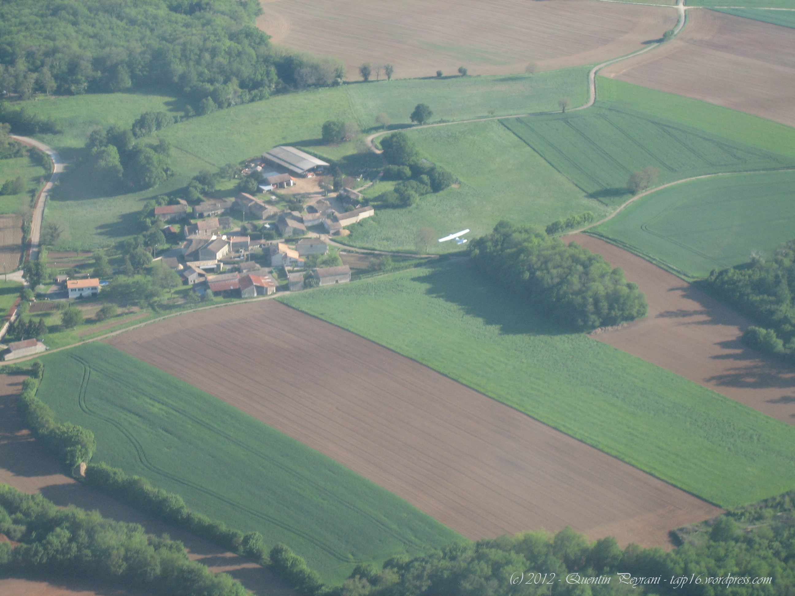 13 heure, on est décollé. On ne repère pas le point de départ: ça commence bien !! On finit par être vers le PS (Point Start). On prend le cap… Mais lors de cette branche pour rejoindre le PT1 (Point Tournant 1), on apperçoit, une de ces filles… Filles qu’on ne peut pas laisser seule. On se déroute et on la suit xD. Nous ayant semé, on décide de faire demi-tour pour rejoindre le PT1. A partir de là, commence une navigation périlleuse, on zigzag à côté du trait, mais on le suit et on parvient à chaque PT. Je remarque durant cette épreuve que je ne peux vraiment pas me laisser guider, je dois savoir où je suis. Or faire les deux taches avec le Jodel (c’est à dire, conserver un cap, regarder et chercher ça position) est un peu difficile (le compas…), et je manque d’un entraînement certain.