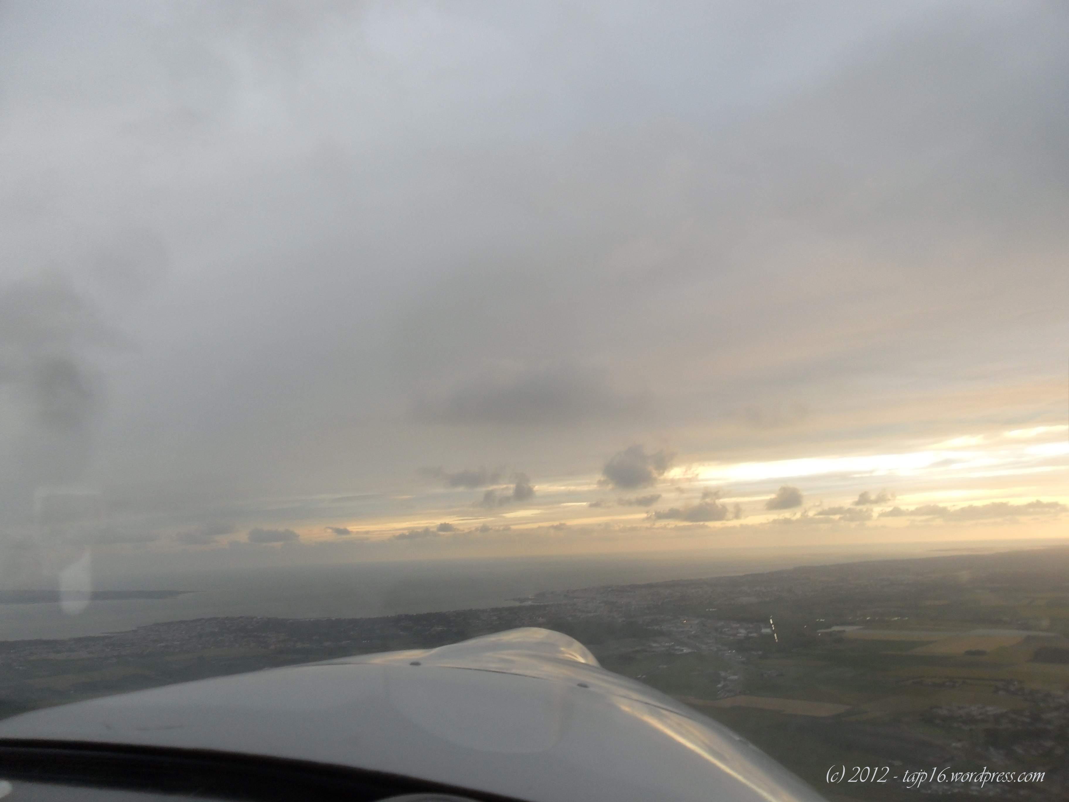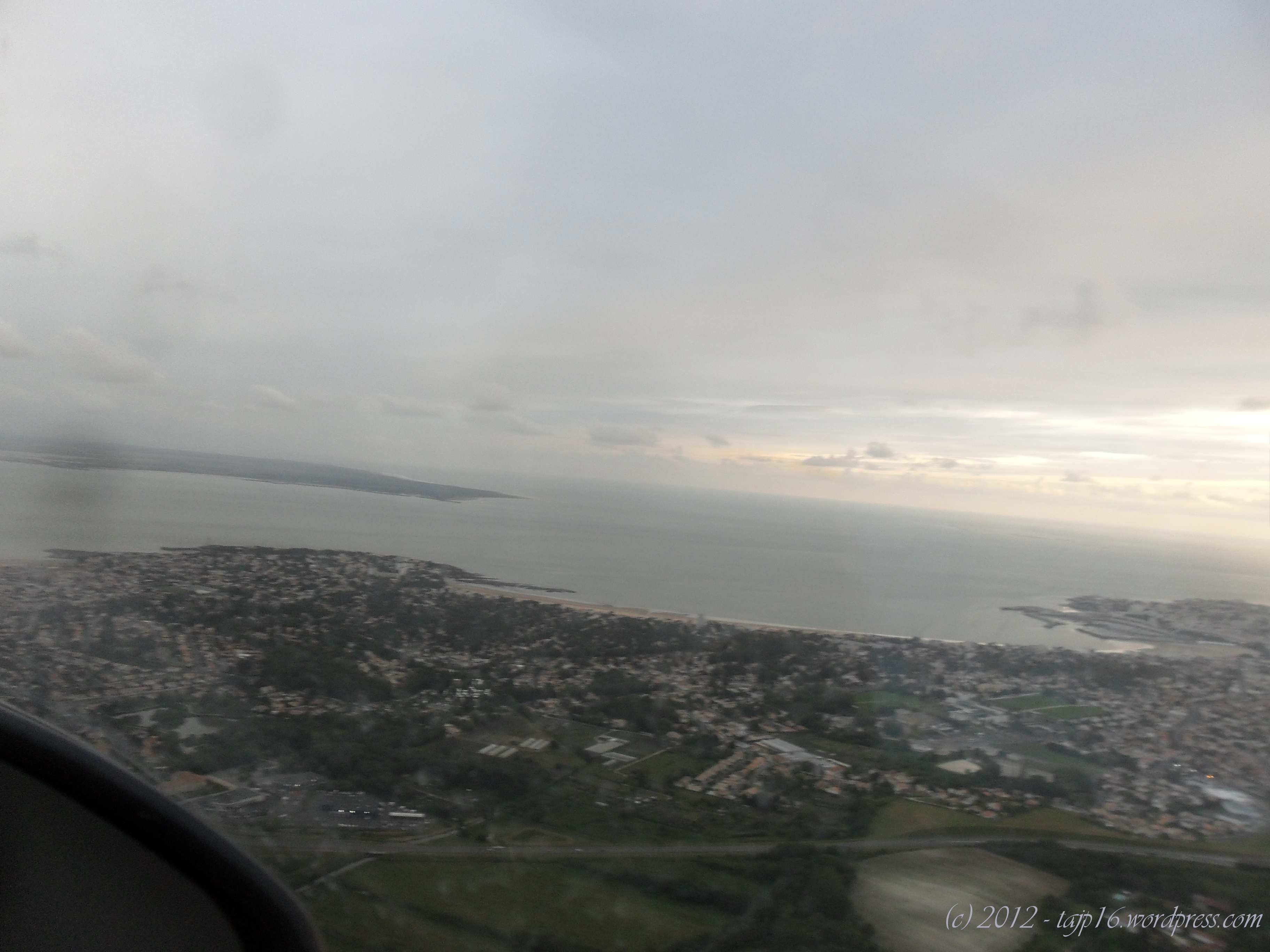 21h00, on décolle enfin. Après avoir traversé un grain au dessus de Cognac, nous arrivons en vue de l’océan. Jeu du jour: chercher la piste :D.