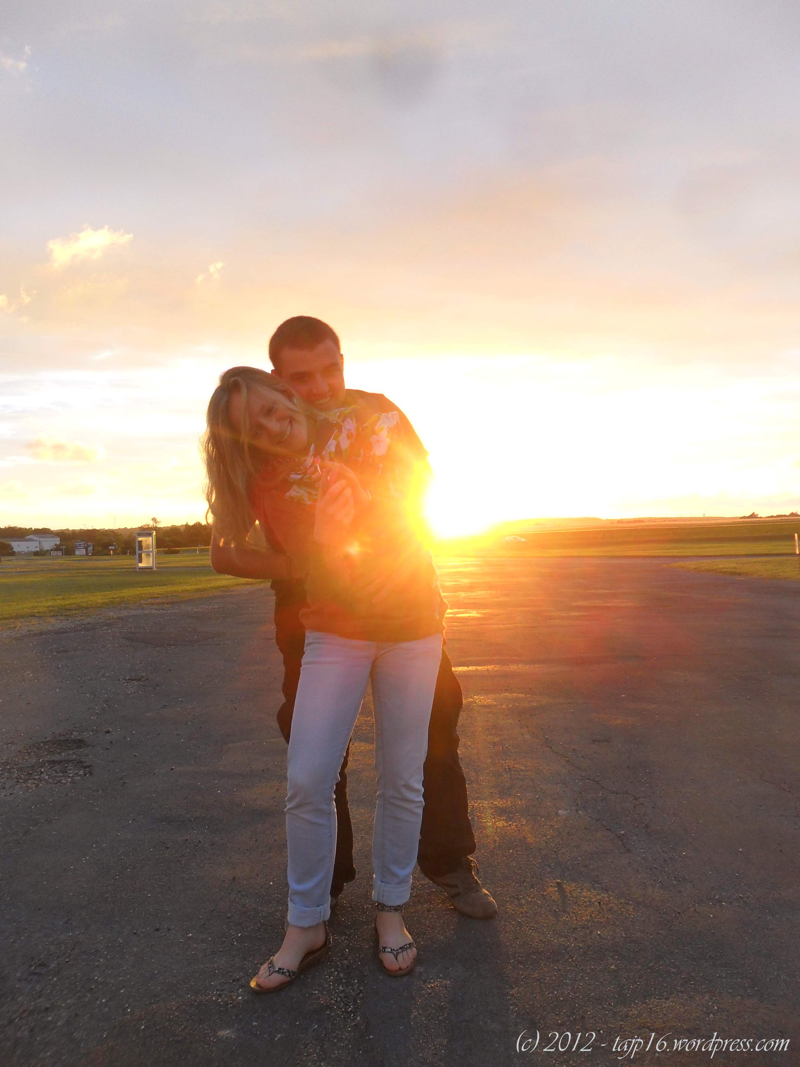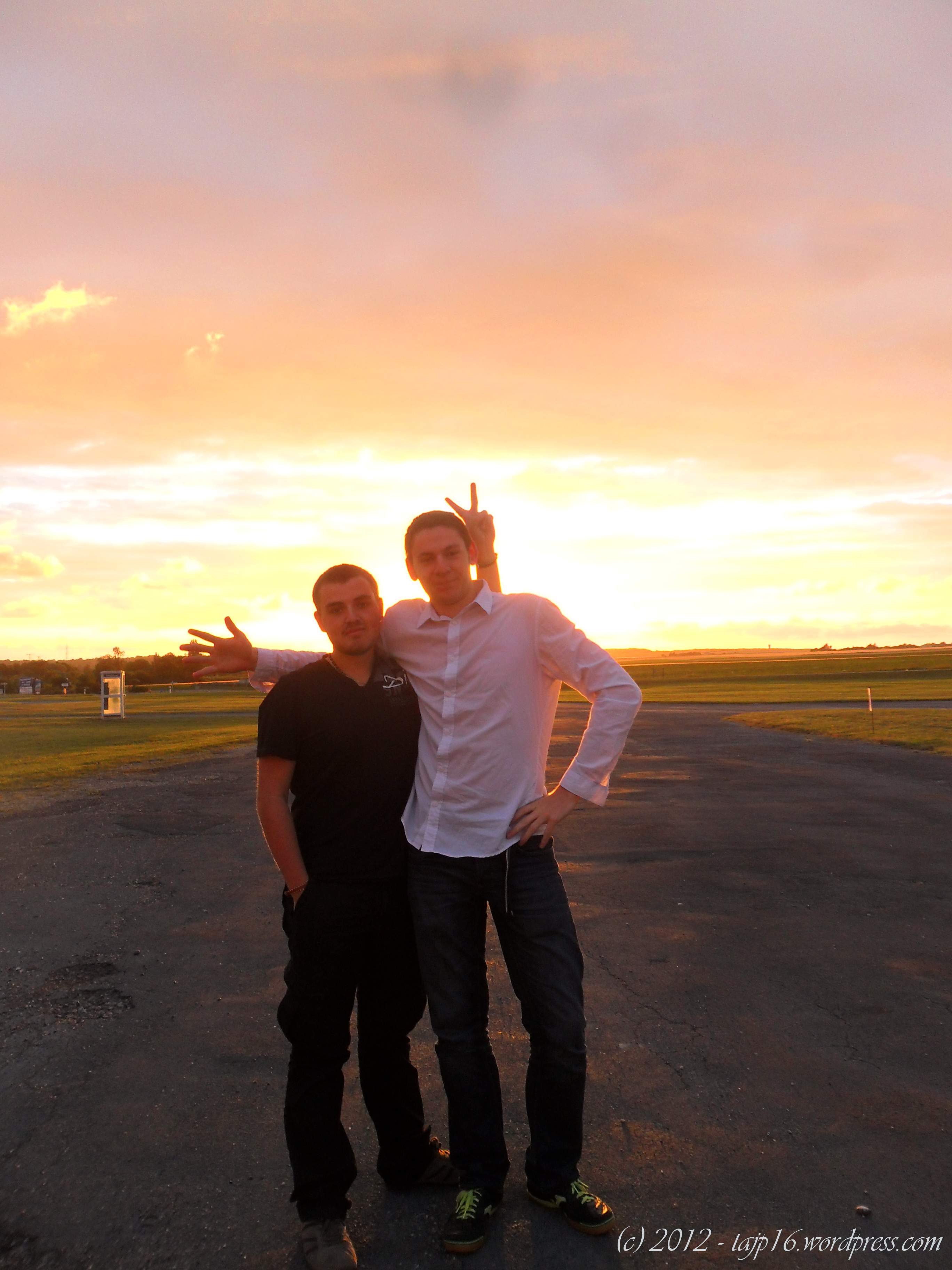 21h40, après 30 minutes de navigation, nous voilà à Royan avec un magnifique couché de soleil et en présence de deux arcs en ciel. J’appercois des gens sur le terrain. On se dirige vers eux. On est joyeusement accueilli. C’est le club para de Royan et leur « bar » ouvert à pas d’heure :D. Après des discussions animées dans la bonne humeur, on nous propose chaleureusement de nous déposer au camping. Proposition, qu’on ne refusera pas :P.