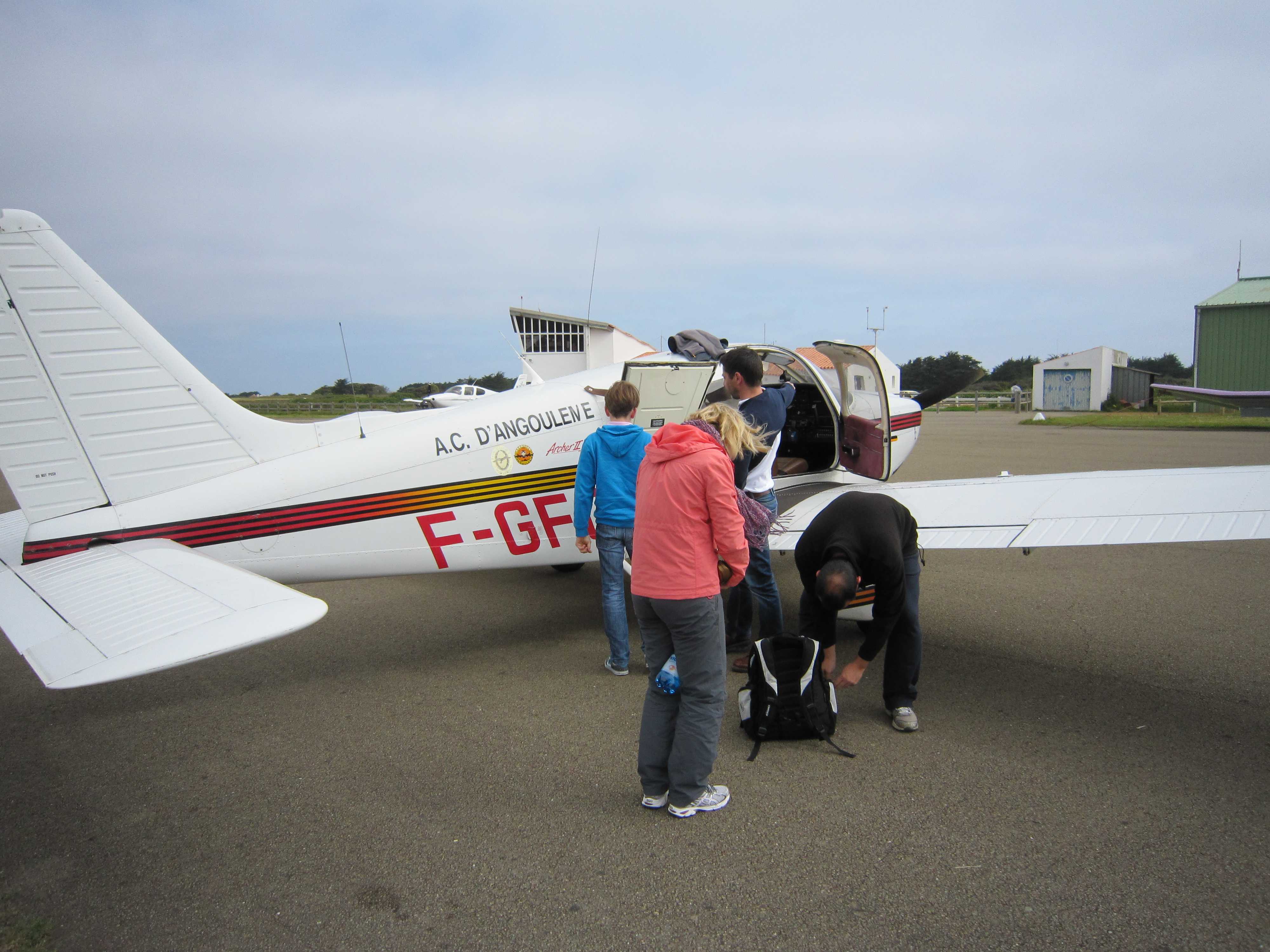 Mais arrêtons de trouver des excuses et reprenons là où nous nous en étions arrêtés. Revenons donc au mois de juin. Ce mois qui, aurait du être chaud mais qui a plutôt été froid. Ma cheminée consommait encore quelques bûches de bois :p. Bref, en juin, une grande sortie fut organisée. Trois avions ont été réquisitionnés avec leur pilote: moi même, Jean-Luc.D, Patrick.C. Je me suis occupé de toute la logistique de ce vol à destination de l’Ile d’Yeu! Nous étions 11 dont une ravissante et charmante jeune fille. Pour lui parler: ANGLAIS oblige!
