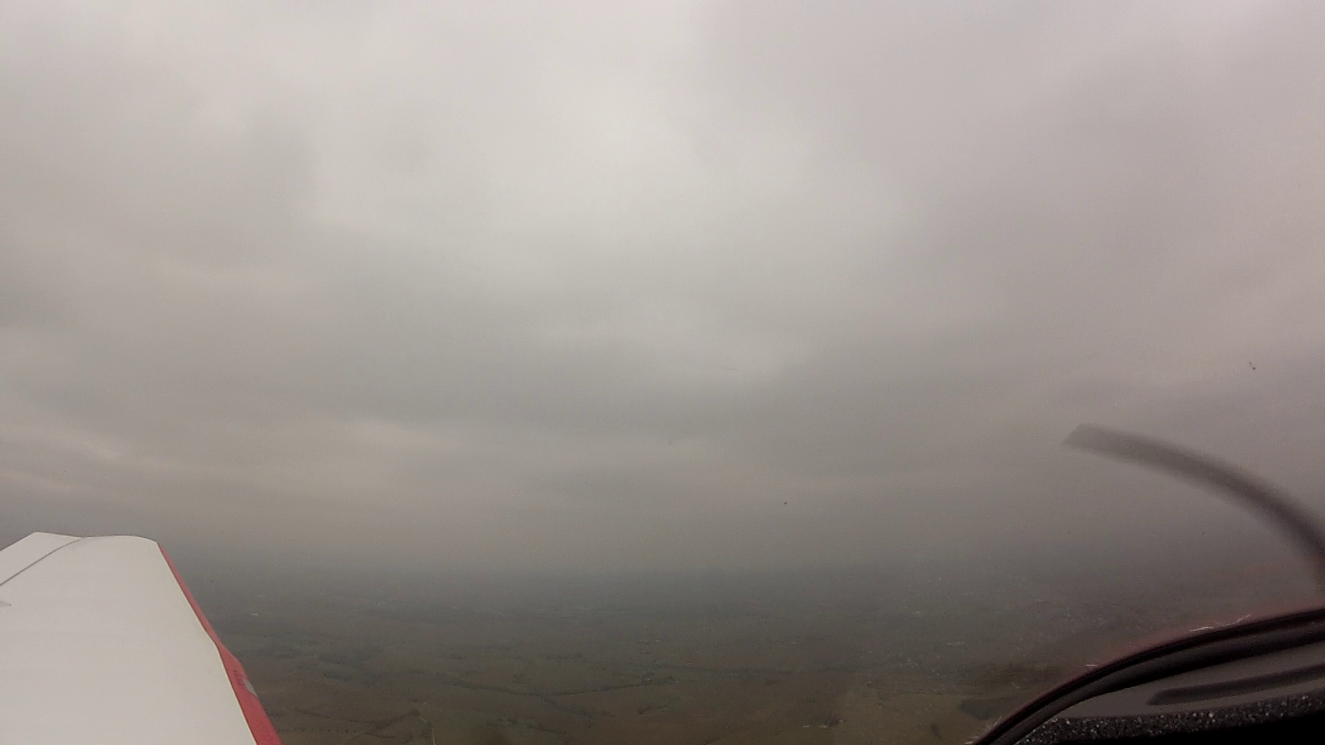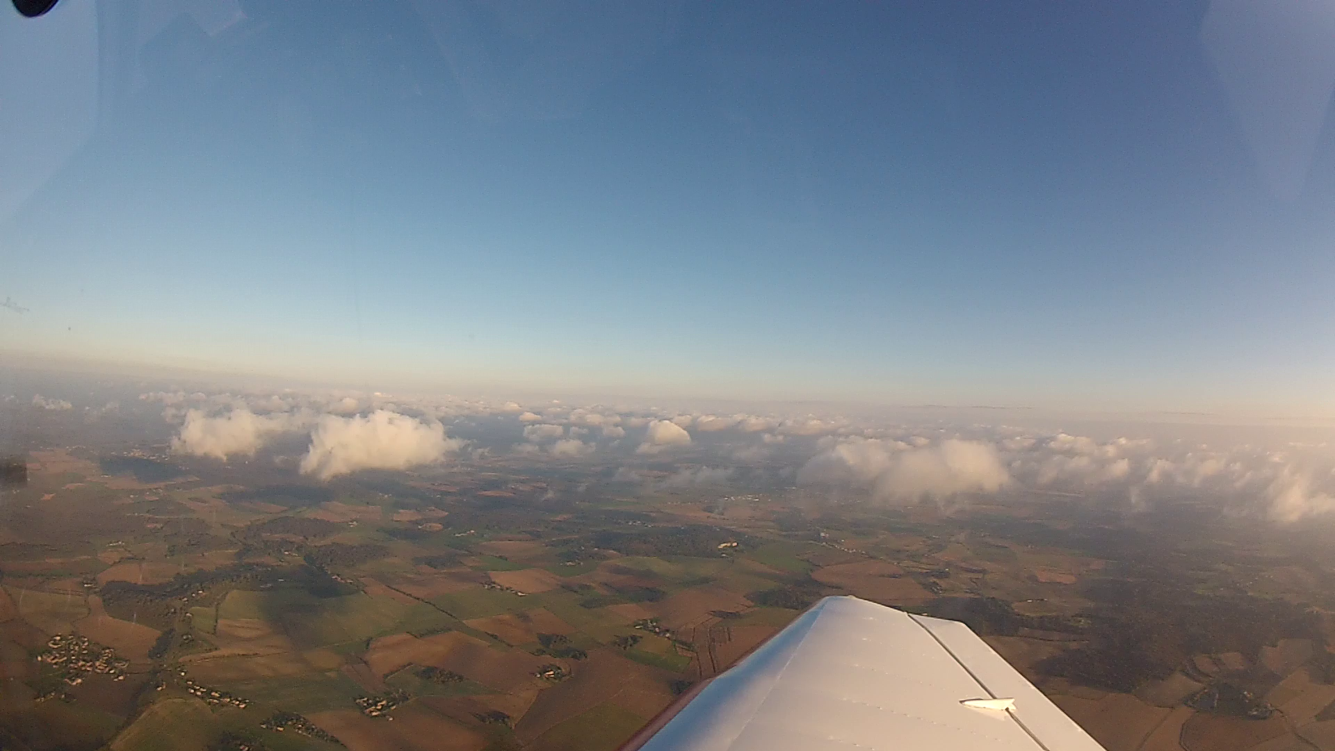 La météo est un peu limite, surtout quand cinq appareils se trouvent dans les parages et sûrement à la même altitude: le plafond présent étant un peu limitatif :). Mais après à peine 20 minutes de vol, nous avons retrouvé des conditions météorologiques agréables: une base de nuage à plus de 3000 pieds et une visibilité passée de quelques kilomètres à plus de 50.