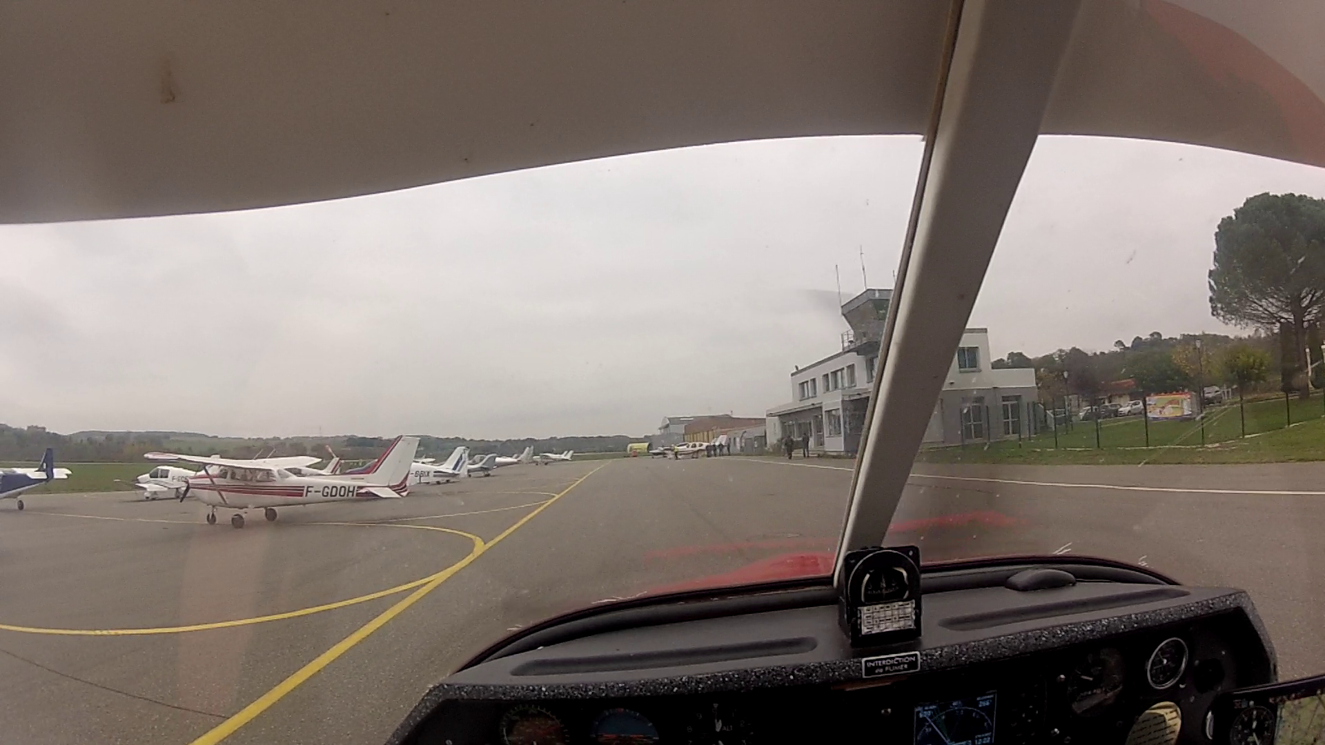 Après 1H15 de vol, nous avons quitté la fréquence de Toulouse pour prendre contact avec celle d’Auch. Pour certains, c’est l’heure du départ. Quelques appareils s’apprêtent à s’aligner sur la piste.