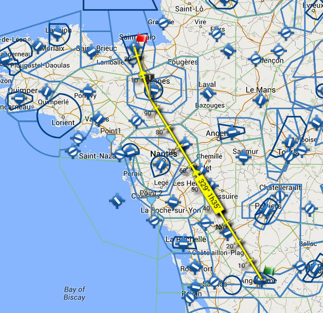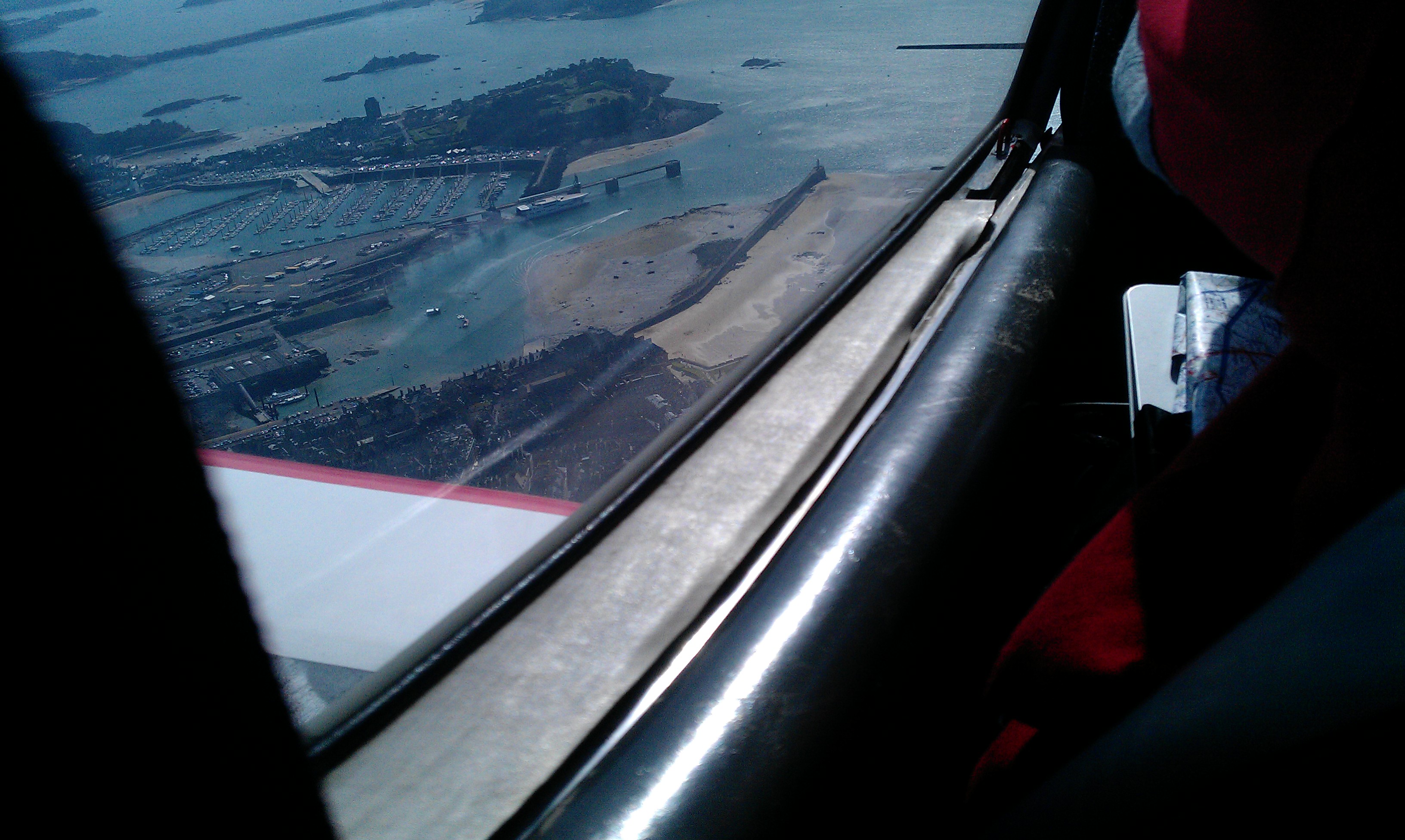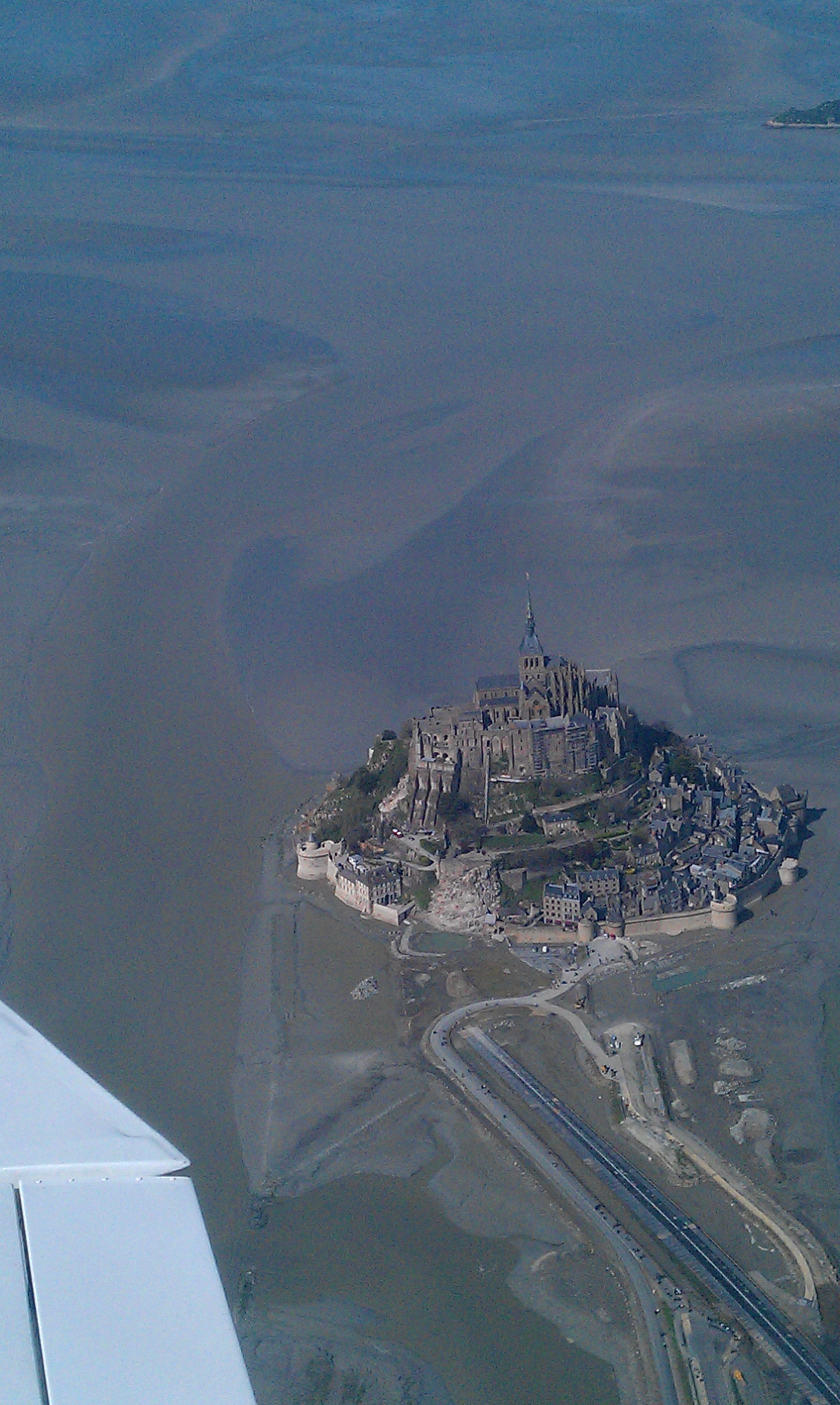 Après un WE de retrouvaille, et une visite de la ville, il est temps de penser à rentrer. Mais avant, nous avons proposé un petit baptême à notre hôte. Un petit tour autour du Mont Sant-Michel et on se repose. Nous décollons dans la fouler –en prenant soin de faire le plein–, direction Angoulême mais avec un petit détours sur les côtes de Bretagne…
